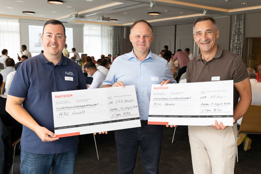 Die Abgänge konnten kompensiert und zwei neue Mitglieder gewonnen werden, womit der CLAN mit 149 Mitgliedern ins neue Vereinsjahr gehen wird. Ziel ist weiterhin ein gesundes Wachstum, damit wir der Beitragsversprechung gegenüber des HSC Suhr Aarau auch nachkommen können. In diesem Jahr durften Thomas und Markus dem Präsidenten des HSC, Dieter Camenzind, zwei Checks überreichen – einerseits der HSC GmbH (1. Mannschaft) CHF 172.800, sowie dem HSC Verein (Nachwuchs) CHF 43.200.